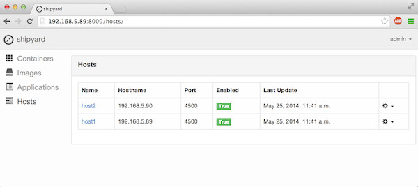 I then went through the same process to add the second host. Now shipyard is managing two docker hosts: host1 and host2.
